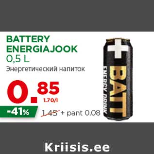 Kampaania periood: 15.01.2014 - 28.01.2014 Hind: 0.85€ BATTERY ENERGIAJOOK 0,5 L