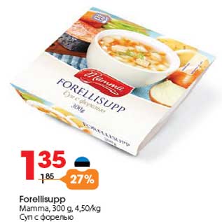 Kampaania periood: 22.01.2014 - 02.02.2014 Hind: 1.35€ Forellisupp Mamma, 300 g, 4,50/kg