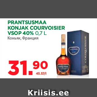Kaup prantsusmaa konjak courvoisier vsop 40% 0,7 l oli müügil allahindlusega Maksimarketi poes ajavahemikul 12.02.2014 kuni 25.02.2014 hinnaga 31.90 eurot.