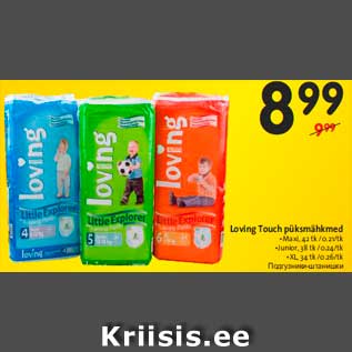 Toode loving touch püksmähkmed oli müügil allahindlusega Hüper Rimi poes ajavahemikul 05.02.2014 kuni 18.02.2014 hinnaga 8.99 eurot.