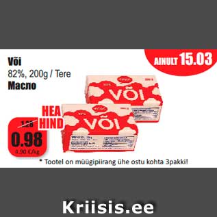 Kampaania periood: 15.03.2014 Hind: 0.98€ Või 82%, 200g / Tere* Tootel on müügipiirang ühe ostu kohta 3 pakki!