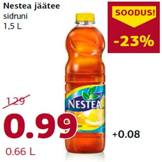 Kaup nestea jäätee oli müügil allahindlusega Comarketi poes ajavahemikul 03.04.2014 kuni 13.04.2014 hinnaga 0.99 eurot.