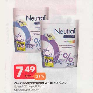 Kampaania periood: 07.05.2014 - 18.05.2014 Hind: 7.49€ Pesupesemiskapslid White või ColorNeutral, 20 tk/pk