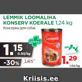 Kampaania periood: 14.05.2014 - 27.05.2014 Hind: 1.15€ LEMMIK LOOMALIHA KONSERV KOERALE 1,24 kg