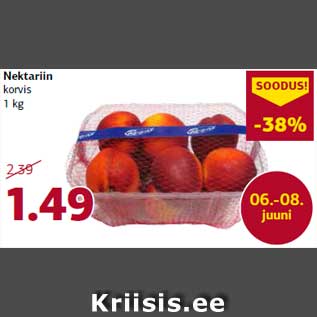Kampaania periood: 06.06.2014 - 08.06.2014 Hind: 1.49€ Nektariinkorvis 1 kg