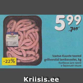 Kampaania periood: 18.06.2014 - 24.06.2014 Hind: 5.99€ Vastse-Kuuste toored grillvorstid lambasooles, kg