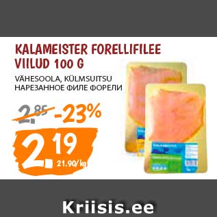 Kampaania periood: 02.07.2014 - 15.07.2014 Hind: 2.19€ Kalameister forellifilee viilud 100 gvähesoola, külmsuitsu