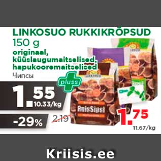 Kampaania periood: 16.07.2014 - 29.07.2014 Hind: 1.55€ LINKOSUO RUKKIKRÕPSUD 150 goriginaal, küüslaugumaitselised, hapukooremaitselised