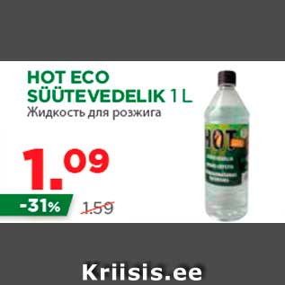 Toode hot eco süütevedelik 1 l oli müügil allahindlusega Maksimarketi, Konsumi ja AjaO poodides ajavahemikul 16.07.2014 kuni 29.07.2014 hinnaga 1.09 eurot.