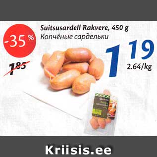 Kampaania periood: 07.08.2014 - 11.08.2014 Hind: 1.19€ Suitsusardell Rakvere, 450 g