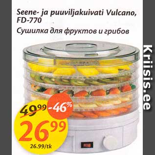 Kampaania periood: 02.09.2014 - 08.09.2014 Hind: 26.99€ Seene- ja puuviljakuivati Vulcano, FD-770