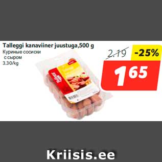 Kaup talleggi kanaviiner juustuga,500 g oli müügil allahindlusega Hüper Rimi ja Rimi poodides ajavahemikul 14.10.2014 kuni 20.10.2014 hinnaga 1.65 eurot.