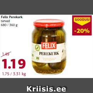 Kaup felix perekurk oli müügil allahindlusega Comarketi poes ajavahemikul 06.11.2014 kuni 16.11.2014 hinnaga 1.19 eurot.