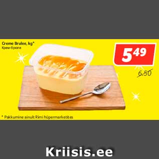 Kampaania periood: 04.11.2014 - 10.11.2014 Hind: 5.49€ Creme Brulee, kg** Pakkumine ainult Rimi hüpermarketites