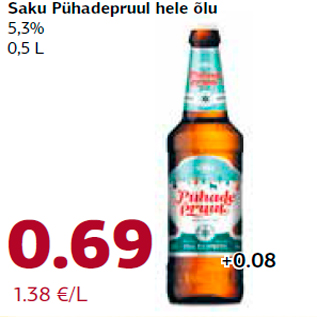 Kaup saku pühadepruul hele õlu oli müügil allahindlusega Comarketi poes ajavahemikul 04.12.2014 kuni 14.12.2014 hinnaga 0.69 eurot.