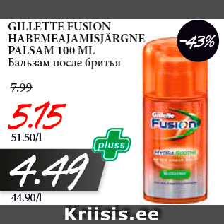 Kampaania periood: 03.12.2014 - 16.12.2014 Hind: 4.49€ GILLETTE FUSION HABEMEAJAMISJÄRGNE PALSAM 100 ML