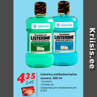 Kampaania periood: 09.12.2014 - 15.12.2014 Hind: 4.35€ Listerine antibakteriaalne suuvesi, 500 ml• Coolmint • Freshburst