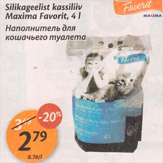 Kampaania periood: 30.12.2014 - 05.01.2015 Hind: 2.79€ Silikageelist kassiliiv Maxima Favorit, 4 l