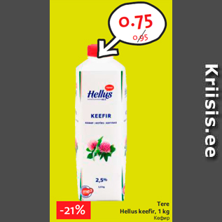 Kampaania periood: 06.01.2015 - 12.01.2015 Hind: 0.75€ Tere Hellus keefir, 1 kg