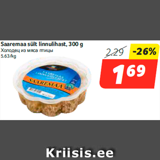 Kampaania periood: 24.02.2015 - 02.03.2015 Hind: 1.69€ Saaremaa sült linnulihast, 300 g