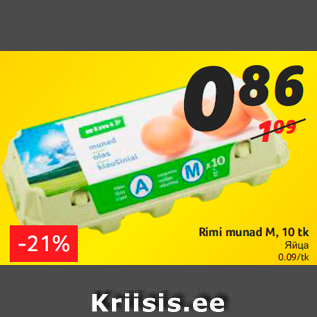 Kampaania periood: 03.03.2015 - 09.03.2015 Hind: 0.86€ Rimi munad M, 10 tk
