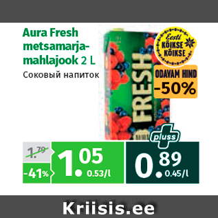 Kampaania periood: 18.03.2015 - 31.03.2015 Hind: 0.89€ Aura Fresh metsamarjamahlajook 2 L