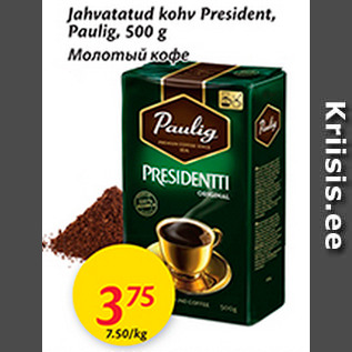 Kampaania periood: 21.04.2015 - 27.04.2015 Hind: 3.75€ Jahutatud kohv President, Paulig, 500 g