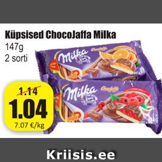 Kampaania periood: 12.06.2015 - 18.06.2015 Hind: 1.04€ Küpsised ChocoJaffa Milka147 g/ 2 sorti