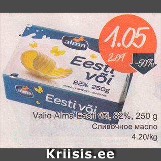 Kampaania periood: 13.07.2015 - 19.07.2015 Hind: 1.05€ Valio Alma Eesti või, 250 g