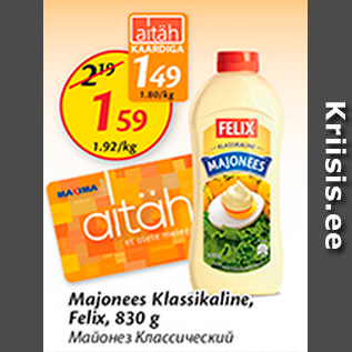 Kampaania periood: 21.07.2015 - 27.07.2015 Hind: 1.49€ Majonees Klassikaline, Felix, 830 g