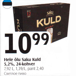 Kaup hele õlu saku kuld oli müügil allahindlusega Selveri poes ajavahemikul 28.07.2015 kuni 03.08.2015 hinnaga 10.99 eurot.