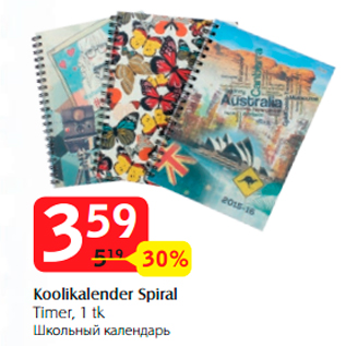 Kampaania periood: 14.07.2015 - 14.09.2015 Hind: 3.59€ Koolikalender SpiralTimer, 1 tk