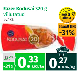 Kaup fazer kodusai 320 g oli müügil allahindlusega Maksimarketi, Konsumi ja AjaO poodides ajavahemikul 05.08.2015 kuni 18.08.2015 hinnaga 0.27 eurot.