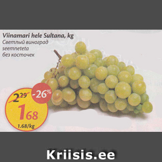 Kampaania periood: 20.08.2015 - 24.08.2015 Hind: 1.68€ Viinamari hele Sultana, kgseemnetega
