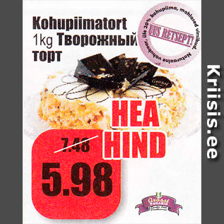 Kampaania periood: 01.09.2015 Hind: 5.98€ Kohupiimatort 1 kg