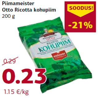 Kampaania periood: 17.09.2015 - 27.09.2015 Hind: 0.23€ Piimameister Otto Ricotta kohupiim 200 g