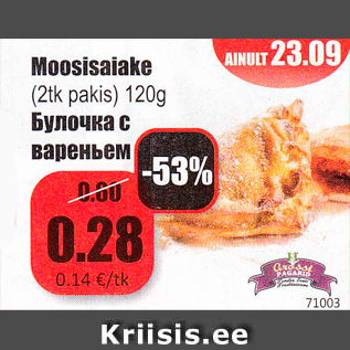 Kampaania periood: 23.09.2015 Hind: 0.28€ Moosisaiake(2 tk pakis) 120 g