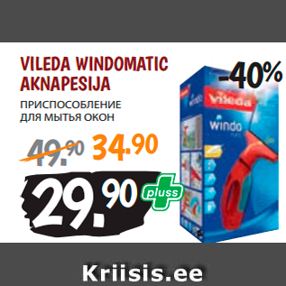 Kampaania periood: 07.10.2015 - 20.10.2015 Hind: 29.90€ VILEDA WINDOMATIC AKNAPESIJA