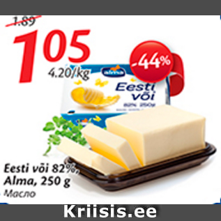 Kampaania periood: 29.10.2015 - 02.11.2015 Hind: 1.05€ Eesti või82%, Alma, 250 g