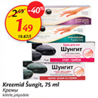 Kampaania periood: 17.11.2015 - 23.11.2015 Hind: 1.49€ Kreemid Šungit, 75 ml