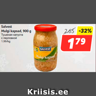 Kampaania periood: 22.12.2015 - 28.12.2015 Hind: 1.79€ Salvest Mulgi kapsad, 900 g