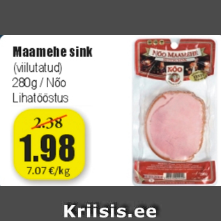 Kampaania periood: 08.01.2016 - 21.01.2016 Hind: 1.98€ Maamehe sink(viilutatud) 280 g / Nõo Lihatööstus
