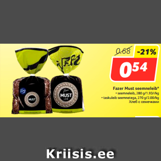 Kampaania periood: 09.02.2016 - 15.02.2016 Hind: 0.54€ Fazer Must seemneleib*• seemneleib, 280 g/1.93//kg