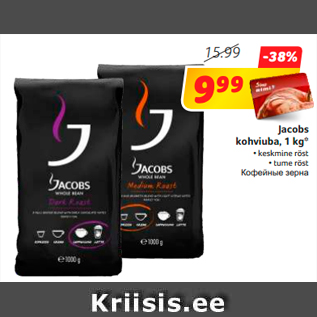 Kampaania periood: 15.03.2016 - 21.03.2016 Hind: 9.99€ Jacobs kohviuba, 1 kg*• keskmine röst