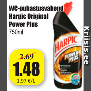 Toode wc-puhastusvahend harpic original power plus, 750 ml oli müügil allahindlusega Grossi poes ajavahemikul 01.04.2016 kuni 14.04.2016 hinnaga 1.48 eurot.