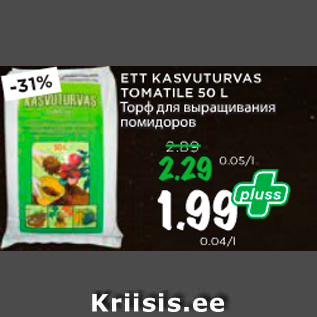 Kampaania periood: 06.04.2016 - 19.04.2016 Hind: 1.99€ ETT KASVUTURVAS TOMATILE 50 L