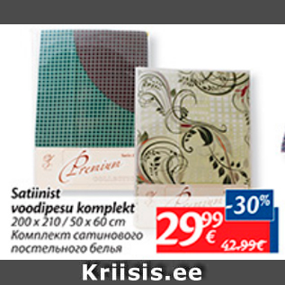 Kampaania periood: 07.06.2016 - 13.06.2016 Hind: 29.99€ Satinist voodipesu komplekt200 x 210/50x60 cm