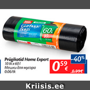 Kampaania periood: 28.06.2016 - 04.07.2016 Hind: 0.59€ Prügikotid Home Expert10 tk x 60 l