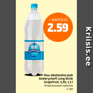 Kaup muu alkohoolne jook sinebryhoff long drink grepefruit oli müügil allahindlusega Säästumarketi poes ajavahemikul 04.07.2016 kuni 10.07.2016 hinnaga 2.59 eurot.
