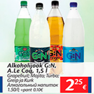 Kaup alkoholijook g:n, a.le coq, 1,5 l oli müügil allahindlusega Maxima poes ajavahemikul 05.07.2016 kuni 11.07.2016 hinnaga 2.25 eurot.